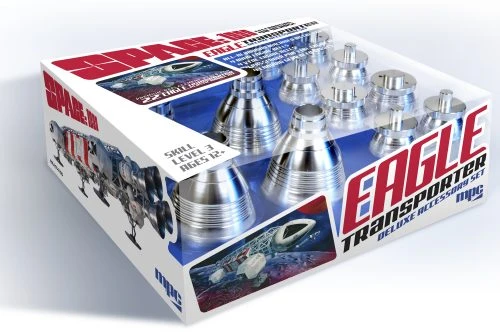 These authentically detailed add-on parts from MPC offer modelers the ability to take their new 22” Space:1999 Eagle Transporter model kit to the next level. These machine-turned aluminum parts feature exquisite quality that can’t be approached in injected styrene. The parts are precision tooled to exact in-scale detail and have been polished to a semi-gloss sheen.
