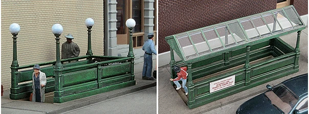 Add underground access to your big city scenes with the Walthers Cornerstone Subway Entrance kit. Based on the entrances found along city streets in a number of cities this kit comes with parts to build two different entrances and includes optional parts for different styles and eras. The Subway Entrance kit will look great on your early 1900s and later city sidewalks.